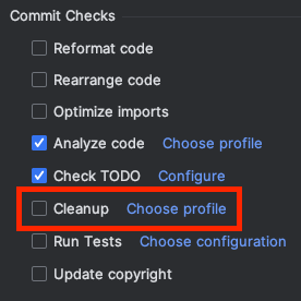 - Intellij의 커밋 설정의 Cleanup 옵션은 코드의 동작을 바꿀 수도 있으니 유의하라.
